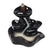 A simple yet beautiful backflow incense burner in a black ceramic flowing river design. When the cone is lit the smoke from the cone cascades downwards in a mesmerising waterfall effect to pool at the bottom. Beautiful to watch. For best effects burn indoors in an area away from any sudden air movements. Please note that after burning it is normal for a light oily residue to appear on the oil burner, for this reason we recommend protecting any furniture it is placed upon suitably. The residue can be easily wiped off the burner with a damp cloth. Please exercise caution when burning incense. Only backflow incense cones should be used with this product – standard incense cones will not create the desired effect. It is normal for cones to take up to 10 minutes after being lit to start creating the smoking/mist effect. We supply a selection of backflow incense cones in a variety of scents.